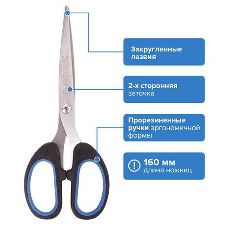 Ножницы BRAUBERG «Classic+» предназначены для правшей. Остроконечные лезвия с двухсторонней заточкой из нержавеющей стали, устойчивой к коррозии, остаются максимально острыми даже при интенсивной и длительной эксплуатации. Длина лезвий 160 мм. Симметричные эргономичные ручки выполнены из мягкого пластика с резиновыми вставками, что помогает обеспечить удобный захват и уменьшить нагрузку на руку при продолжительной работе. Продаются в картонной упаковке с европодвесом.