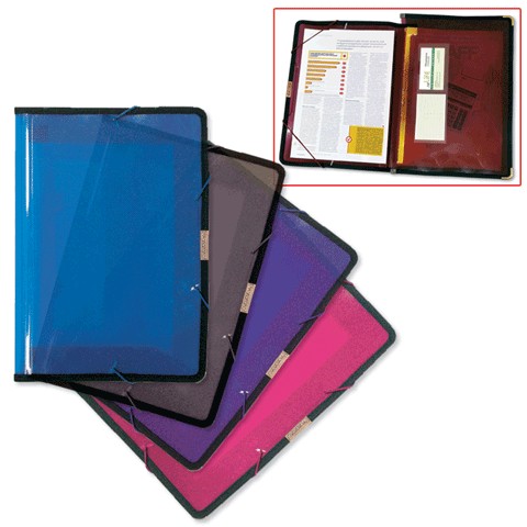 Папка из полупрозрачного пластика с тканевой окантовкой позволяет хранить большое количество бумаг, расширяясь до 70 мм.