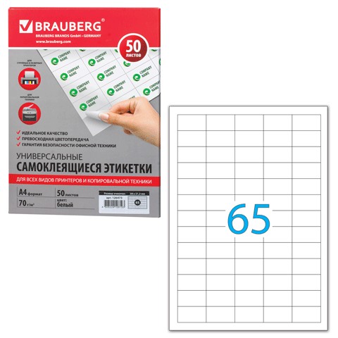 | 65 этикеток на листе А4 формата. | ||