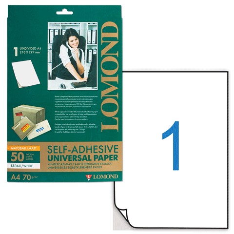 Бумага LOMOND А4 самоклеющаяся – это бумага формата А4 на клеевой основе универсального назначения. Бумага подходит для печати на струйных, матричных, лазерных принтерах, копировальных аппаратах и служит для создания наклеек, этикеток, лейблов и других целей.