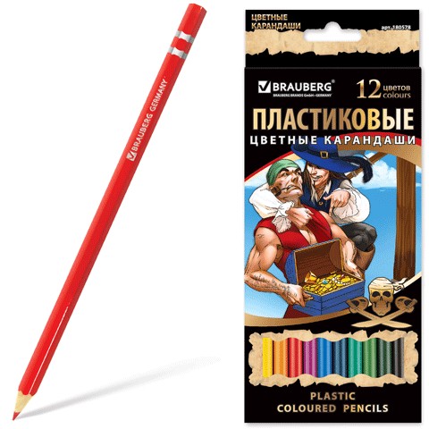 В наборе 12 пластиковых карандашей ярких и насыщенных цветов. Не ломаются при падении и не пачкают рук, не имеют запаха, легко затачиваются. Упаковки с зарисовками из жизни отважных пиратов привлекут внимание мальчишек.
