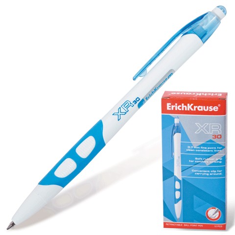 Автоматическая шариковая ручка с корпусом из полупрозрачного пластика и мягким резиновым грипом увеличенного размера. Сменный стержень.