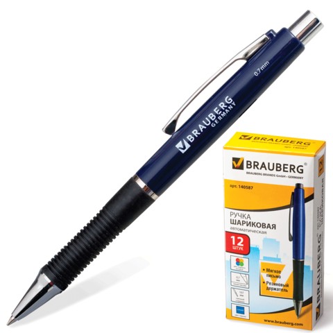 Автоматическая шариковая ручка со специальной рифленой вставкой в области захвата. Сменный стержень.