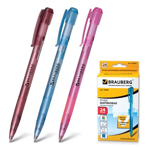 Автоматическая шариковая ручка с корпусом из полупрозрачного пластика и резиновым упором.