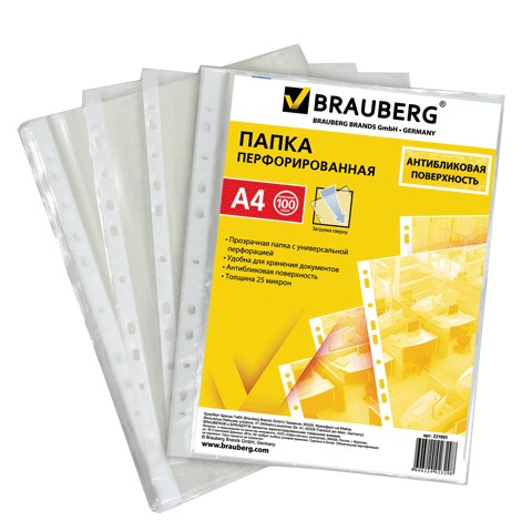 Файл-вкладыш А4 с перфорацией 25мкм BRAUBERG апельсин. корка