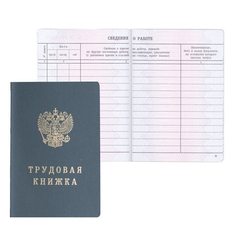 Бланк документа "Трудовая книжка" в твердой обложке соответствует установленному образцу.