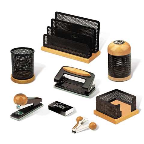 Предметы изготовлены из светлого дерева и черного металла. Упакован в оригинальную подарочную коробку из прозрачного пластика. 8 предметов: