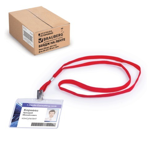 Бейдж на текстильной ленте используется для размещения именных карточек, пропусков, пластиковых карт. Карман из мягкого прочного пластика гарантирует долгий срок службы.