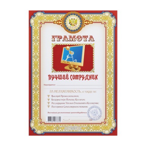 Шуточная похвальная грамота имеет оригинальный дизайн и стихотворные надписи. Порадуйте гостей вашего праздника, вручив им шуточную похвальную или почётную грамоту.