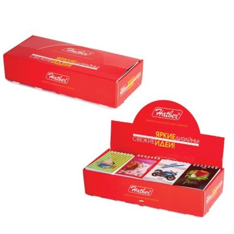 Картонные дисплей-витрины для блокнотов А 7 формата на гребне или на клею станут отличным готовым решением для розничной выкладки.