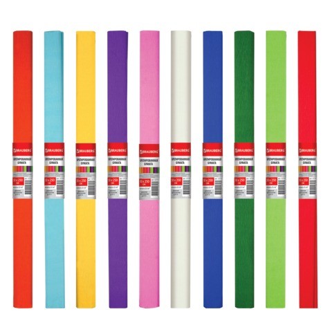 Поделочная крепированная бумага применяется для декорирования подарочной упаковки, оформления букетов, изготовления поделок и аппликаций, праздничного оформления залов, изготовления карнавальных костюмов и декораций для детских и корпоративных праздников.