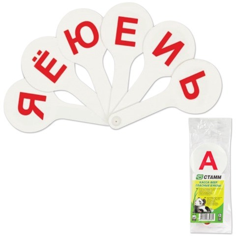 Веер с гласными буквами предназначен для младших классов. Выполнен из ударопрочного сертифицированного полипропилена, отличается легкостью. Крупный размер и шрифт, качественная печать, устойчивая к истиранию.