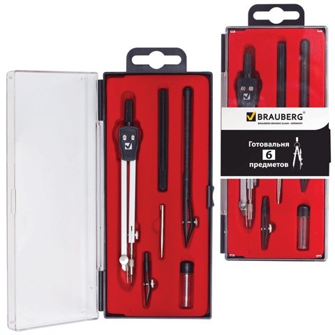 Металлическая готовальня предназначена для учеников старших классов и студентов. В состав готовальни входят 6 предметов.