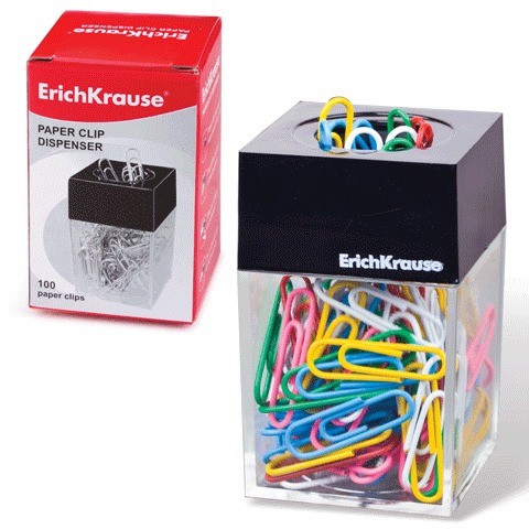 Пластиковая скрепочница с магнитом, способствующим удобной фиксации скрепок.