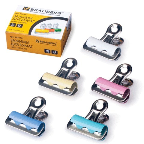Зажимы для бумаг BRAUBERG предназначены для скрепления документов без использования степлера. Эргономичный дизайн и яркие цвета выгодно выделяют зажимы-бульдоги среди традиционных канцелярских мелочей.