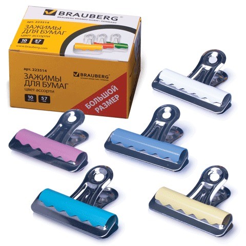 Зажимы для бумаг BRAUBERG предназначены для скрепления документов без использования степлера. Эргономичный дизайн и яркие цвета выгодно выделяют зажимы-бульдоги среди традиционных канцелярских мелочей.