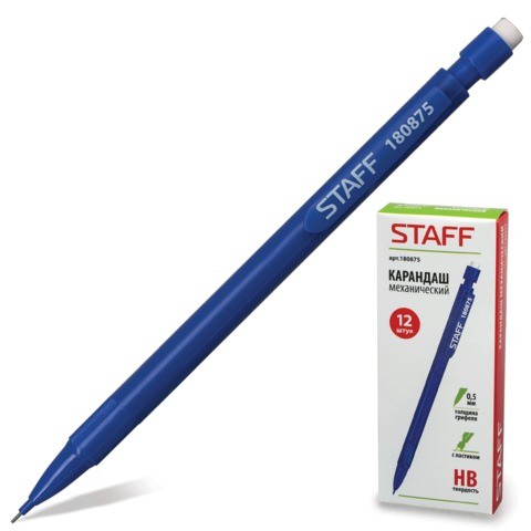 Простой и надежный механический карандаш с нажимным механизмом и встроенным ластиком. Отличное решение для повседневного использования.