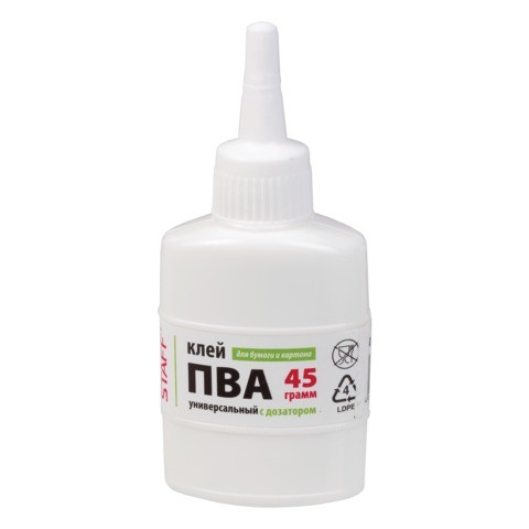 Хорошо себя зарекомендовавший клей ПВА отечественного производства. Предназначен для склеивания дерева, бумаги, картона, ткани, кожи и т.д.