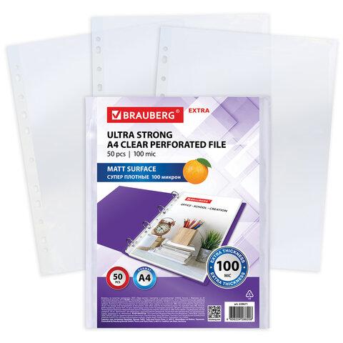 Перфорированные папки-файлы BRAUBERG «EXTRA 1000» предназначены для хранения документов в папке с любым кольцевым механизмом или скоросшивателем.