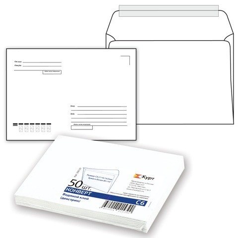 Конверт почтовый формата С6 предназначен для рассылки писем, открыток и т.п.