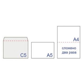 Конверт почтовый формата С5 предназначен для рассылки писем, открыток, документов формата А5 или А4 в сложенном виде.