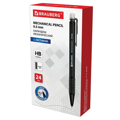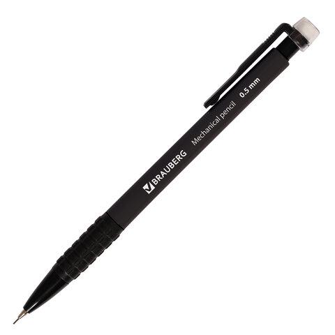 Механический карандаш BRAUBERG «Comfort» с корпусом черного цвета и удобным резиновым упором, исключающим скольжение пальцев во время письма.
