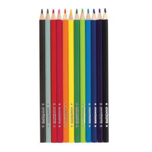 Набор состоит из 12 цветов: розовый, красный, желтый, оранжевый, салатовый, зеленый, голубой, синий, фиолетовый, коричневый, серый, черный. Яркие цвета развивают цветовосприятие ребенка. Трехгранная форма сечения корпуса позволяет не скатываться карандашу с поверхности стола во время занятий рисованием. Они изготовлены из древесины ценных пород и имеют лакированный корпус. Высокосортная древесина и качество исполнения гарантируют легкую заточку. Мягкий грифель качества «А» с диаметром 3 мм обладает повышенной прочностью, не ломается и не крошится при заточке. Все карандаши заточены и поставляются в картонной упаковке с европодвесом.