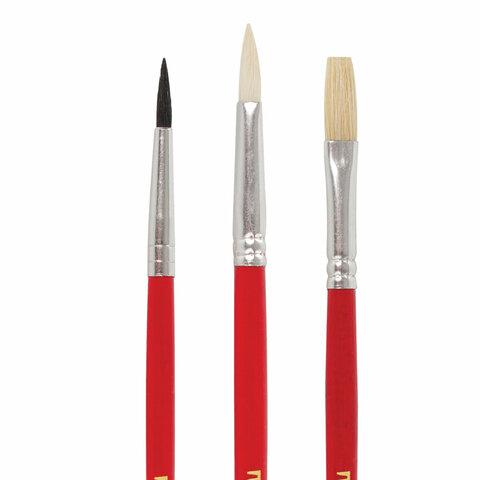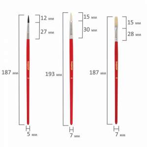 Кисти из волоса белки, козы и щетины отлично впитывают и отдают краску, хорошо держат форму, долговечны и надежны. Благодаря кисти №3 ребенку будет комфортно прорисовывать мелкие детали. Кисти №4 и 6 позволят делать более крупные мазки и линии. Разный тип ворса кисти позволяет работать с различными видами красок в разных техниках рисования. Деревянную лакированную рукоятку кисти удобно держать в руке.