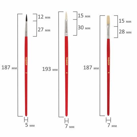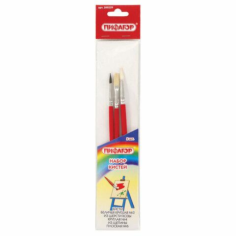 Набор из трех кистей разного размера и типа ПИФАГОР предназначен для детского творчества в образовательных учреждениях и дома.