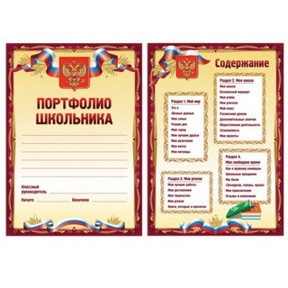 Портфолио школьника имеет титульный лист, содержание и состоит из 4 разделов. 1 раздел – Мой мир, который содержит темы: Это я, Личные данные, Моя семья, Режим дня, Мой город, Мои лучшие друзья, Мои увлечения, Моя мечта, Мои питомцы. 2 раздел – Моя школа который содержит темы: Моя школа, Безопасный маршрут, Моя учеба, Мои учителя, Мой класс, Расписание уроков, Дополнительные занятия, Общественная деятельность, Успеваемость, Мои проекты. 3 раздел – Мои успехи в который входят темы: Мои лучшие работы, Мои достижения, Мое творчество, Мои успехи, Книги, которые я прочитал. 4 раздел – Мое свободное время который содержит темы: Как я провожу каникулы, Школьные праздники, Мы были (Экскурсии, театры, музеи), Мои приключения, Отзывы и пожелания.