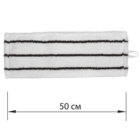 Моп имеет форму плоского прямоугольника, такая форма и чистящая поверхность из ворса длиной 1.5 см позволяет удобно собрать грязь по углам и захватить большую площадь убираемой поверхности, что в свою очередь уменьшает временные затраты на уборку больших площадей. Устойчива к износу, что обеспечивает долгий срок службы уборочного инструмента. Выполнена из микрофибры с щетинистым абразивом, имеет размер 50х14 см. Выдерживает до 300 циклов стирки. Максимальный объем впитывания - 500 мл.