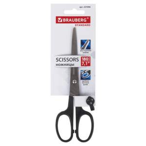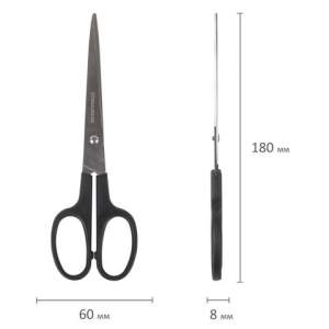 Лезвия ножниц изготовлены из высокопрочной нержавеющей стали. Материал не подвержен коррозийным процессам, отличается износостойкостью, надежностью и долговечностью. Концы острых лезвий закругленной формы, что обеспечивает большую степень безопасности использования. Заточка лезвий двухсторонняя, что позволяет сохранить режущие свойства на протяжении длительного времени. Симметричные ручки изготовлены из качественного пластика повышенной прочности. Модель предназначена для правшей. Общая длина ножниц — 180 мм.