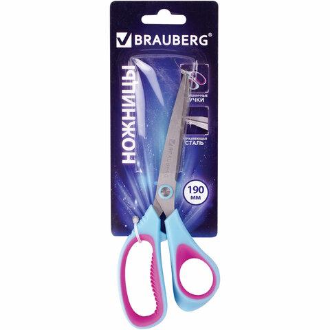 Ножницы BRAUBERG «Universal» предназначены для правшей. Остроконечные лезвия с двухсторонней заточкой из нержавеющей стали, устойчивой к коррозии, остаются максимально острыми даже при интенсивной и длительной эксплуатации. Длина лезвий 190 мм. Ассимметричные эргономичные ручки выполнены из мягкого пластика с резиновыми вставками, что помогает обеспечить удобный захват и уменьшить нагрузку на руку при продолжительной работе. Продаются в картонной упаковке с европодвесом.