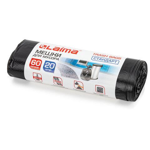 Изготовлены из полиэтилена низкого давления (ПНД) плотностью 10 микрон и имеют объем 60 литров. Размер мешка - 60х70 см (±5%). Поставляются в рулоне по 20 штук. Преимуществами данных мешков для мусора являются: высокая грузоподъемность.