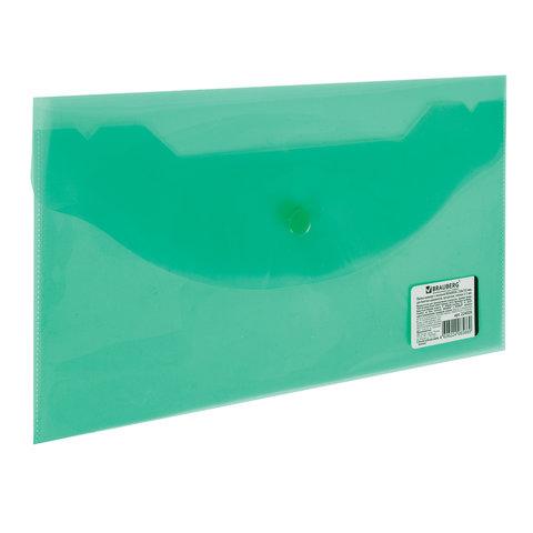 Папка-конверт с гладкой фактурой размера 250х135 мм изготовлена из плотного тонированного пластика зеленого цвета толщиной 150 мкм. Закрывается на защелку-кнопку, что делает удобным частое использование и обеспечивает быстрый доступ к ее содержимому. Папка способна вместить до 100 листов стандартной плотности.