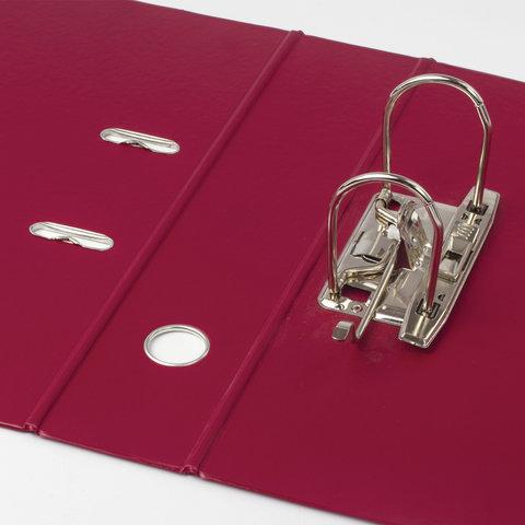 Папка формата А4 с вертикальной ориентацией изготовлена из качественного износоустойчивого картона с ПВХ покрытием с обеих сторон. Благодаря такому плотному покрытию допустима влажная уборка изделия. Ширина корешка в 70 мм позволяет разместить до 500 листов. Прорези для колец на внешней крышке позволяют оставаться папке закрытой даже при большом количестве бумаг, а надежный арочный механизм легко справляется с ежедневными нагрузками. Корешок снабжен этикеткой для маркировки содержимого, что позволяет структурировать информацию. Такая папка станет незаменимым помощником для работников с документацией, а яркий насыщенный бордовый цвет папки-регистратора выделит ее в ряду других.
