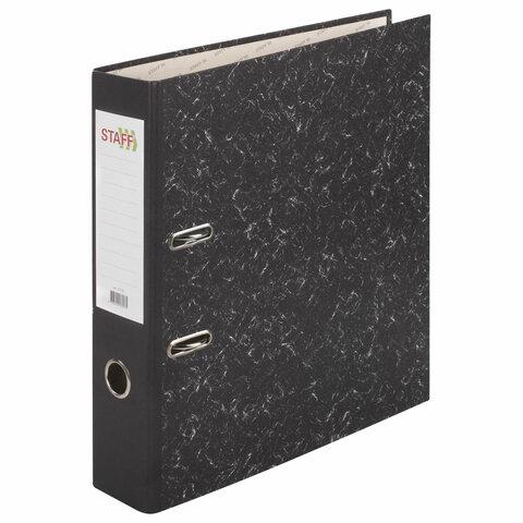 Папка формата А4 с вертикальной ориентацией изготовлена из качественного картона с покрытием под "мрамор". Ширина корешка в 70 мм позволяет разместить до 500 листов. Прорези для колец на внешней крышке позволяют оставаться папке закрытой даже при большом количестве бумаг, а надежный арочный механизм легко справляется с ежедневными нагрузками. Корешок снабжен этикеткой для маркировки содержимого, что позволяет структурировать информацию.