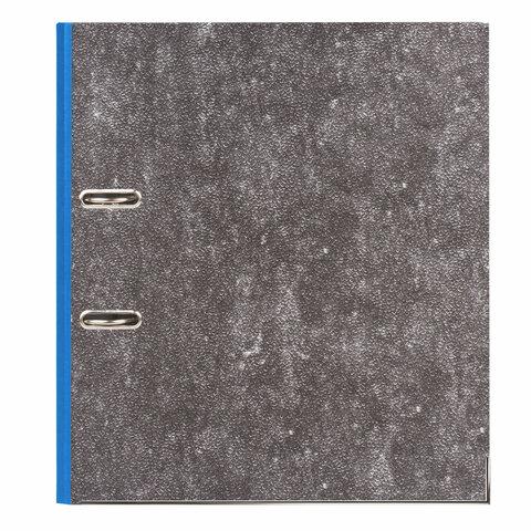Папка формата А4 с вертикальной ориентацией изготовлена из высококачественного износоустойчивого картона с покрытием под «мрамор». Ширина корешка в 80 мм позволяет разместить до 600 листов. Нижние края папки защищены металлическими уголками, что увеличивает срок службы в 2 раза. Прорези для колец на внешней крышке позволяют оставаться папке закрытой даже при большом количестве бумаг, а надежный арочный механизм легко справляется с ежедневными нагрузками. Синий корешок снабжен этикеткой для маркировки содержимого, что позволяет структурировать информацию.