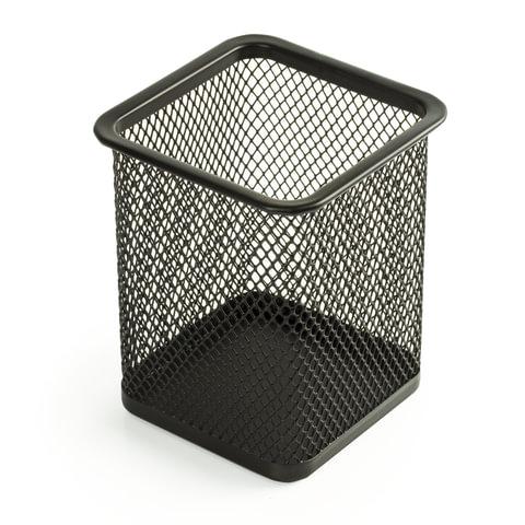 Изготовлена из металлической сетки. Имеет размеры 98х80х80 мм. Состоит из одного отделения. Мягкие подушечки на дне предотвращают скольжение и порчу мебели. Поставляется без канцелярского наполнения.