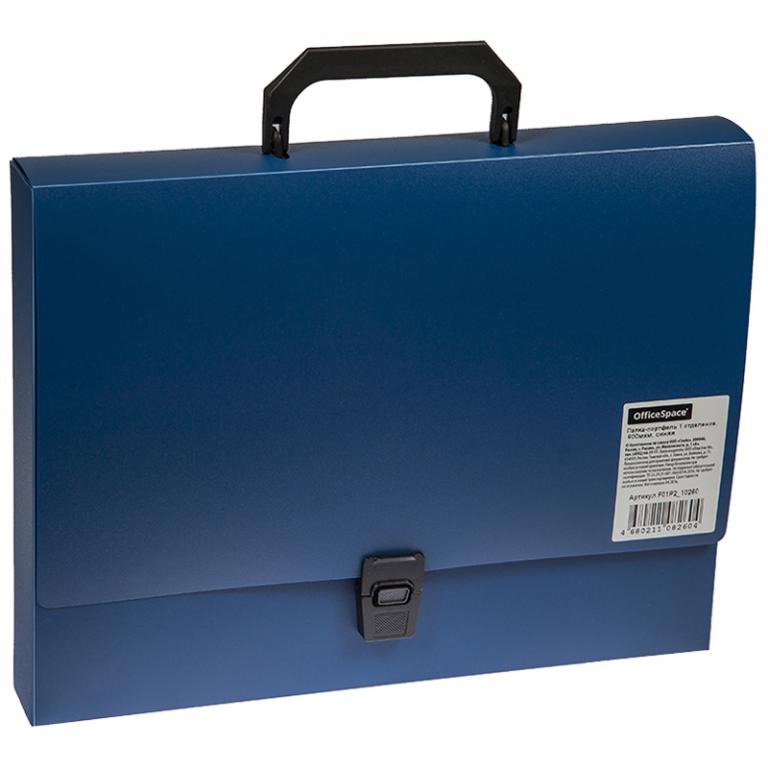 Папка-портфель 1 отделение OfficeSpace, изготовлен из пластика 600мкм, синего цвета. Предназначен для транспортировки документов, бумаг и различных предметов. Портфель застегивается на замок, имеет пластиковую ручку черного цвета. В ассортименте классические офисные цвета.