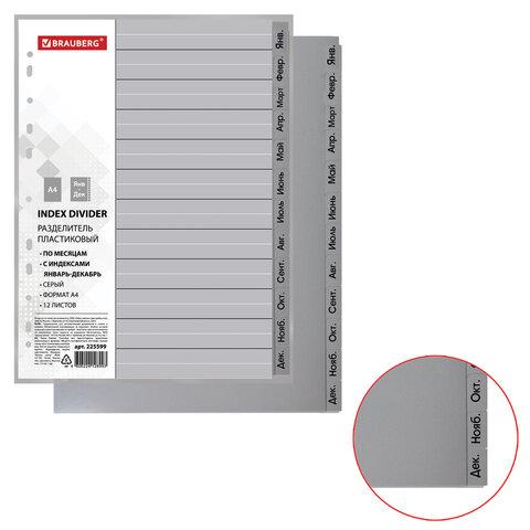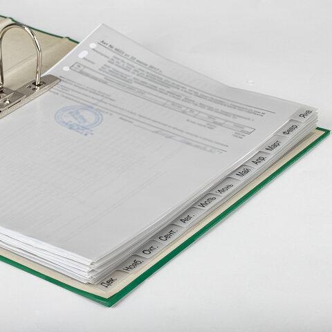 Изготовлены из пластика толщиной 0,12 мм. В комплект входят 12 листов серого цвета, обеспечивающих возможность сортировки документов по месяцам, а также титульный лист для оглавления. Универсальная перфорация позволяет подшивать разделители во все типы папок. Размер — 224х297 мм.