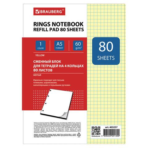 Подходит для всех тетрадей на кольцах формата А5. Внутренний блок содержит 80 листов офсетной бумаги плотностью 60 г/