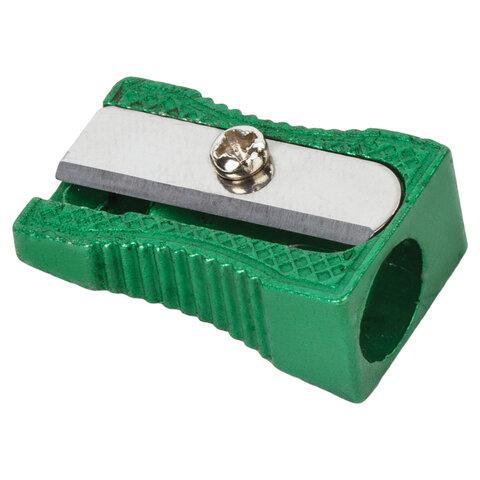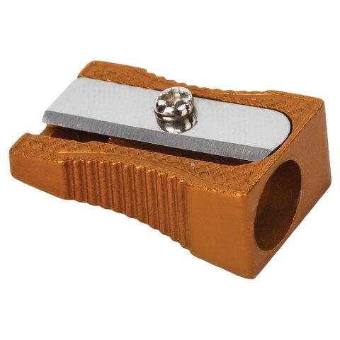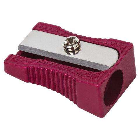 Эргономичный корпус выполнен из металла. Ребристая поверхность корпуса позволяет удобно держать точилку в руке. Острое стальное лезвие обеспечивает быструю и легкую заточку. Размер: 15х10х25 мм.