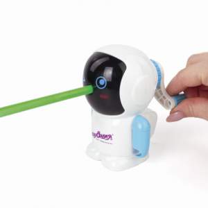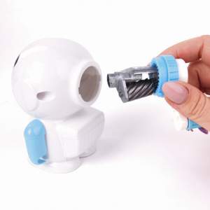 Во время заточки карандаша ручки астронавта двигаются. В ручки можно вставить карандаш. Вращающийся стальной роликовый нож обеспечивает быструю и острую заточку. Точилка имеет одно отверстие и вместительный контейнер для сбора стружки. Антискользящая подложка препятствует скольжению точилки по поверхности. Диаметр затачиваемого карандаша — 8 мм. Размер: 90х110х80 мм.