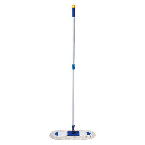 Швабра-рамка предназначена для проведения сухой и влажной уборки помещения. Влажная уборка должна производиться слегка влажным ( не мокрым МОПом, так как он будет тяжелый и не удобным в работе ). Держатель складывается, позволяя надевать и снимать насадку. Алюминиевая телескопическая ручка, шарнирное соединение обеспечивают удобство при использовании и помогают пробраться в дальние уголки и труднодоступные места квартиры, чтобы очистить их от пыли и грязи. Крепление черенка - резьба 1,6 см. Насадка выполнена из хлопка, держатель - из металла и пластика. Длина телескопической ручки из алюминия - 75-130 см. Длина рабочей части - 40х10 см. Вес - 626 г.