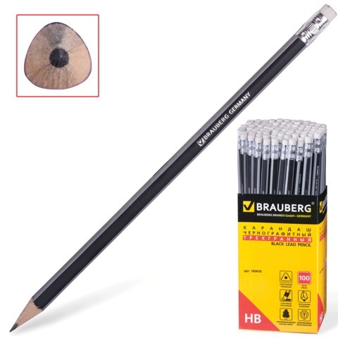 Карандаш чернографитный изготовлен из высококачественной древесины, которая сохраняет грифель от поломки и гарантирует легкую заточку. Карандаш эргономичной трехгранной формы окрашен в черный цвет и украшен серебристыми полосами по граням корпуса.