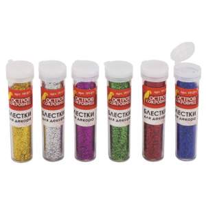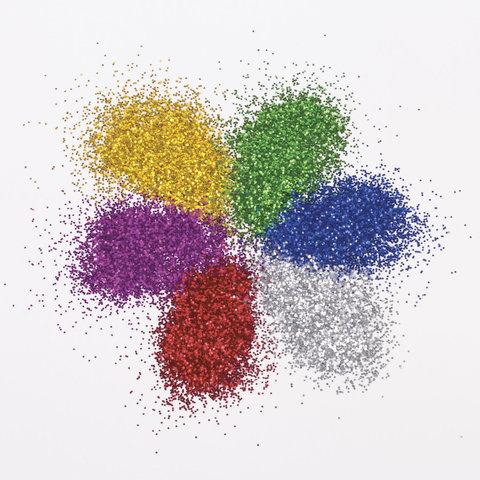 Яркие и разнообразные цвета: зеленый, красный, синий, фиолетовый, а также представлены 2 металлических оттенка - "серебро" и "золото". Блестки подходят для любых поверхностей и всех типов красок и лаков. Изготовлены из полиэтилена. Гипоалергенны. Предназначены для детей старше 6 лет.
