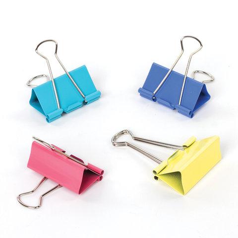 Изготовлены из стали с цветным покрытием. Позволяют скреплять до 230 листов. Не деформируют бумагу. Ширина зажима - 51 мм. Поставляются по 12 штук в картонной коробке