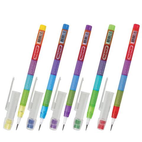 Карандаш не требует заточки, благодаря 9 сменным стержням готов к продолжению работы в любой момент, достаточно просто поменять исписанный стержень на новый. Имеет ластик. Твердость - HB. Пластиковый тонированный корпус ассорти (поставляется в нескольких вариантах цвета без возможности выбора).
