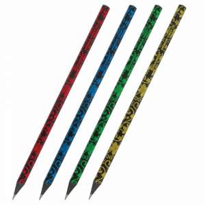 Каждый карандаш имеет индивидуальный штрих-код. Легко затачивается, максимально устойчив к повреждениям. Изготовлен из чёрного дерева высокого качества. Имеет круглое сечение. Карандаш длиной 178 мм обладает средней степенью твердости – HB. Выполнен в черном цвете с цветными дизайнами. Поставляется заточенным в пластиковом стакане по 72 штуки.